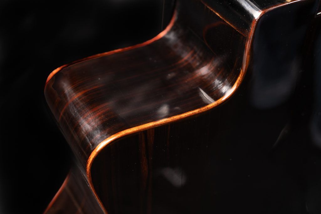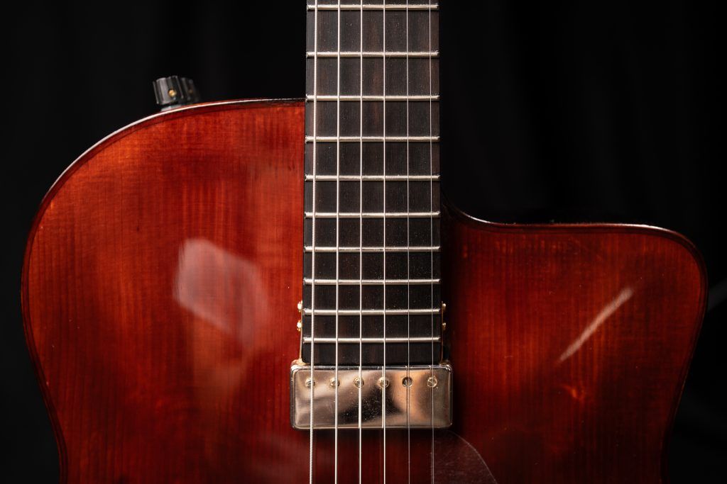 Durch die dünne Ausarbeitung der geschnitzten Fichtendecke, ist die Gitarre rein akustisch sehr durchsetzungsstark.