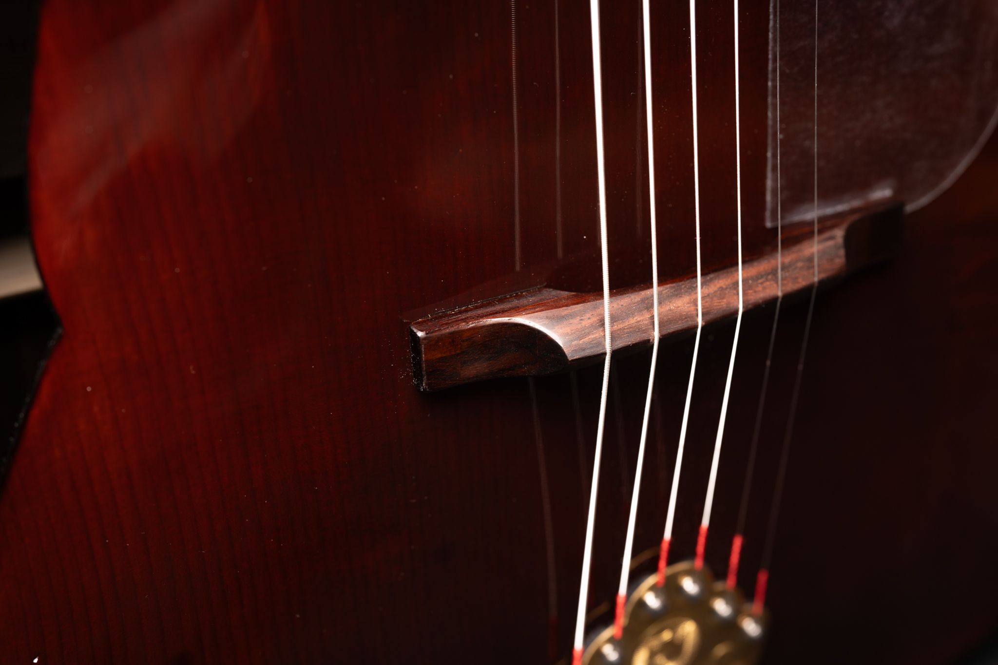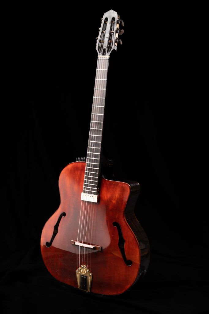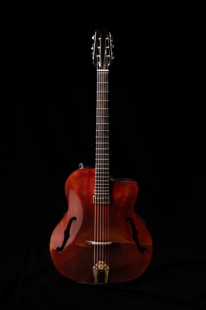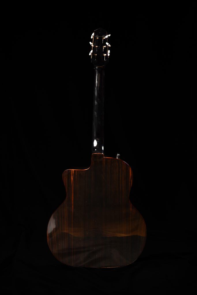 Durch die dünne Ausarbeitung der geschnitzten Fichtendecke, ist die Gitarre rein akustisch sehr durchsetzungsstark.